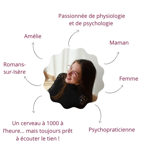 Je me suis donc orientée vers ce qui me correspond vraiment : la psychologie. Formée à l'EFPP (e-faculté de psychologie et de psychanalyse), et maman d'un petit garçon, je me suis lancée avec une mission claire : t'accompagner vers ton mieux-être.